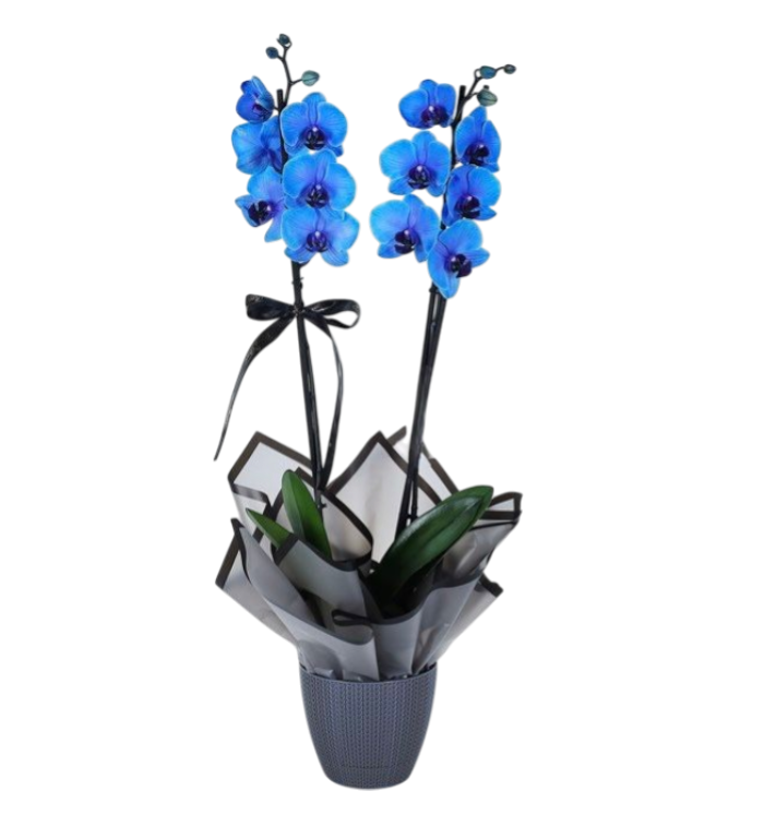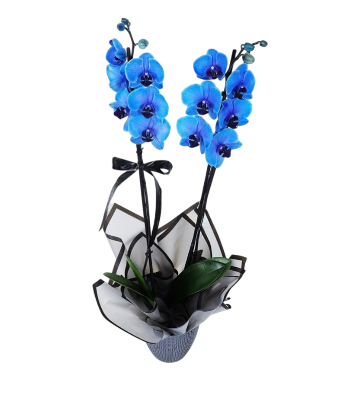 Zarafeti ve asaleti temsil eden Çift Dallı Magic Blue Mavi Orkide, özel günlerde unutulmaz bir hediye alternatifi sunar. Canlı mavi tonları ve güçlü çiçek yapısıyla dikkat çeken bu özel orkide tasarımı, hem modern hem de prestijli bir hediye seçeneğidir.