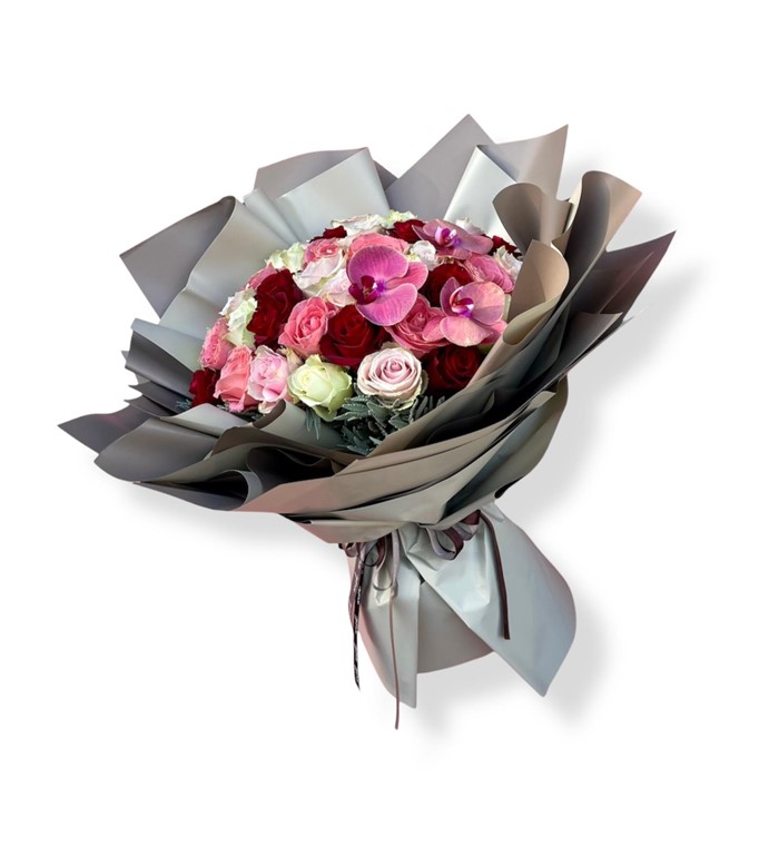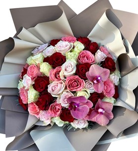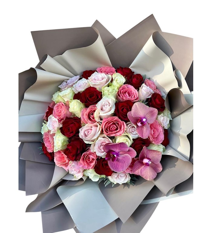 Canlı renklerin zarif uyumunu yansıtan Maria Mixed Roses, kırmızı gül, Hermosa gül, Pink Athena gül ve beyaz gül olmak üzere 4 farklı renk ve tür gülden oluşan özel bir bukettir. Toplamda 50 adet taze gül içeren bu gösterişli tasarım, enerjik ve romantik görünümüyle sevdiklerinize unutulmaz bir sürpriz sunar.