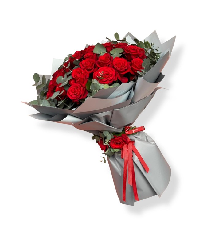 Sevdiklerinize unutulmaz bir sürpriz sunmak için tasarlanan Valentine Kırmızı Gül Buketi, 30 adet kırmızı ithal gül ve ferah okaliptus ile özenle hazırlanmıştır. Deneyimli İzmir çiçekçi ekibimiz tarafından titizlikle dizilen bu buket, özel günlerde romantizmi ve zarafeti bir araya getirir.